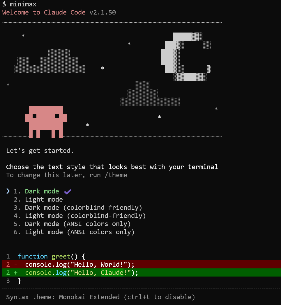 alias minimax='CLAUDE_CONFIG_DIR=~/.minimax claude'