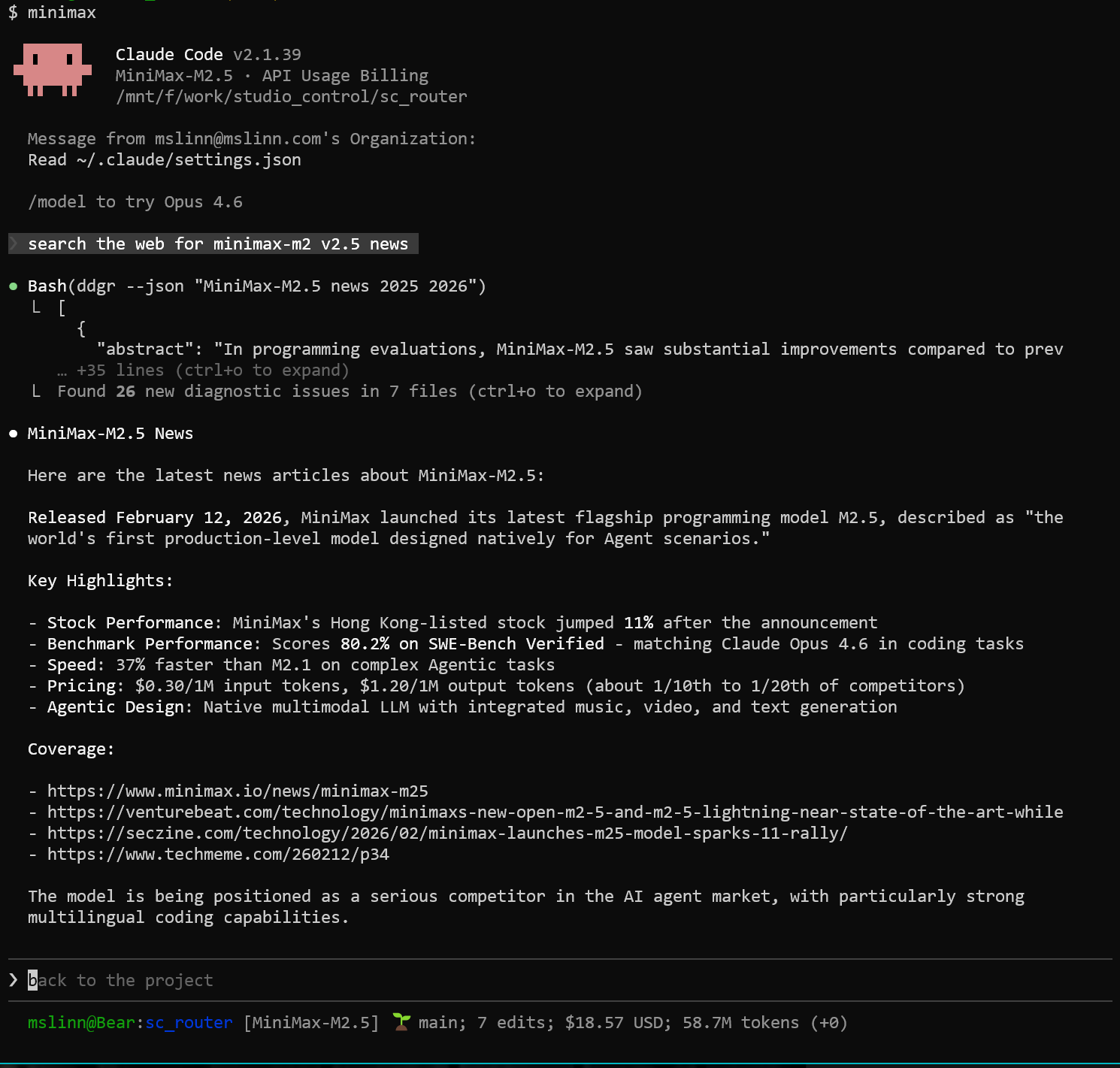 - Works with MiniMax - Bypasses the broken Anthropic API shim