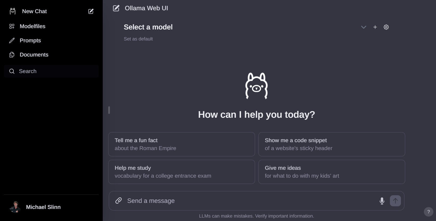 Clicking on New Chat, and then Select a model allowed me to select a model from the models I had already installed.