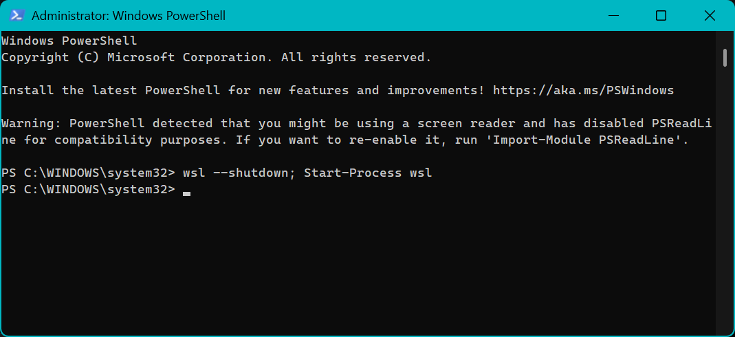 PS C:\Users\Mike Slinn> wsl --shutdown; Start-Process wsl