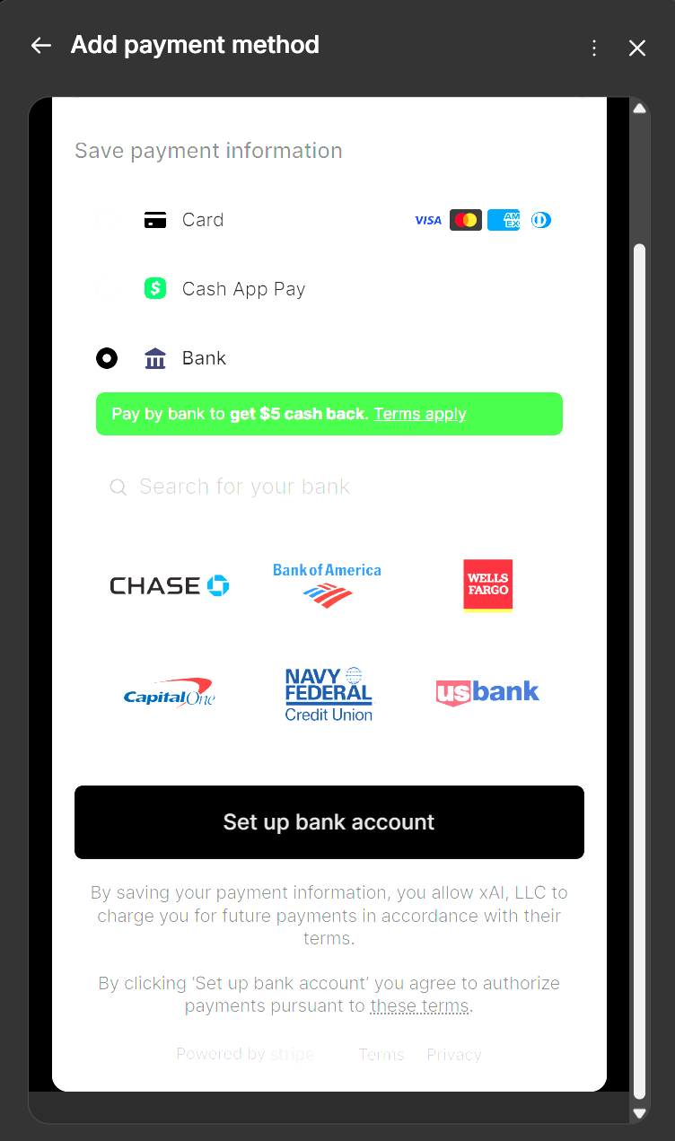 - To opt in, go to the Credits Section on the xAI API Console Billing page.